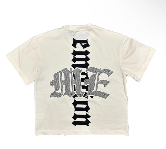 MIXED EMOTION BEACH RHINESTONE TEE CREAM
