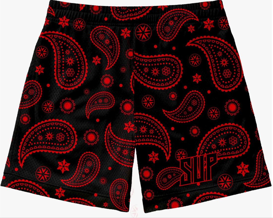 Sup Black and Red Paisley Shorts